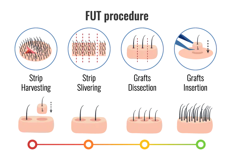 Our experienced hair transplant surgeons, specializing in FUT, perform the procedure. They are supported by a dedicated team of technicians, ensuring high-quality care and outcomes